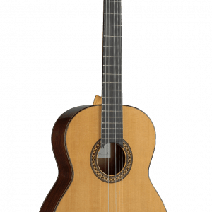 Cuerpo con tapa, fondo plano y aros en caoba laminada. Boca en forma de concha. Mástil de nato. Diapasón de palosanto laminado. 18 trastes en nickel plateado. Puente de palosanto macizo. Longitud de escala 430 mm. Cejuela ABS. Clavijeros mecánicos con pastillas negras. Cuerdas Aquila.