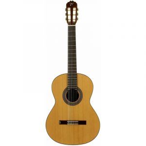 Cuerpo con tapa, fondo plano y aros en caoba laminada. Boca en forma de concha. Mástil de nato. Diapasón de palosanto laminado. 18 trastes en nickel plateado. Puente de palosanto macizo. Longitud de escala 430 mm. Cejuela ABS. Clavijeros mecánicos con pastillas negras. Cuerdas Aquila.